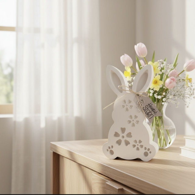 Dieser wunderschöne Hase mit Blumenmuster aus Raysin kann mit einem Ballonlicht beleuchtet werden. Somit ist diese Deko auch ein richtiger Hingucker, wenn es dunkel ist. Dann kommen die Blumen noch besser zur Geltung. Das Ballonlicht wird angeschaltet und in den Hasen gelegt.