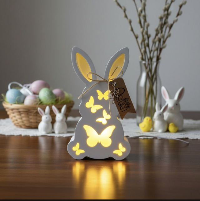 Hase mit Schmetterlingen beleuchtet